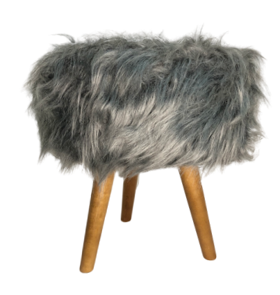 Puff Decorativo Redondo em Pelúcia com os pés em madeira, trazendo qualidade e conforto para seu lar.